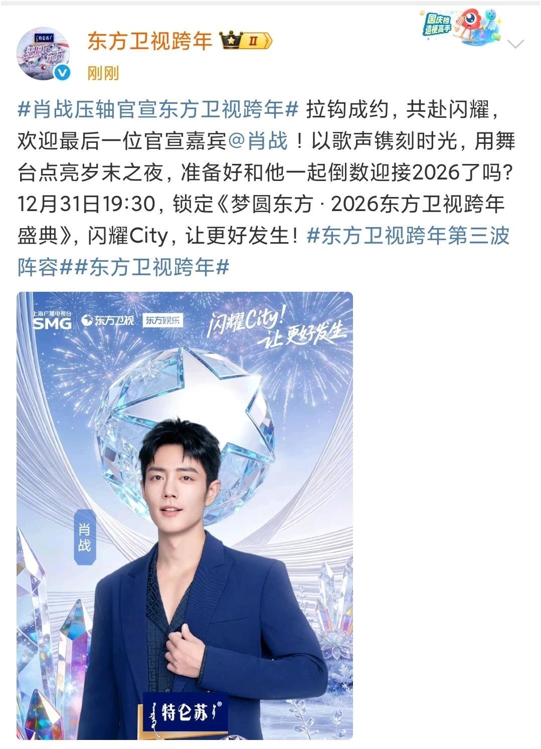 肖战:东方卫视压轴官宣,全网欢欣管待顶流莅临