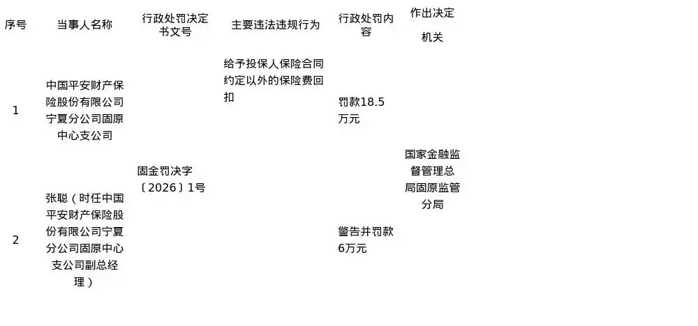 罚单暴露,中国吉祥财产保障股份有限公司宁夏分公司固原中心支公司的主要罪人违纪四肢是:予以投保东谈主保障公约商定除外的保障费回扣。