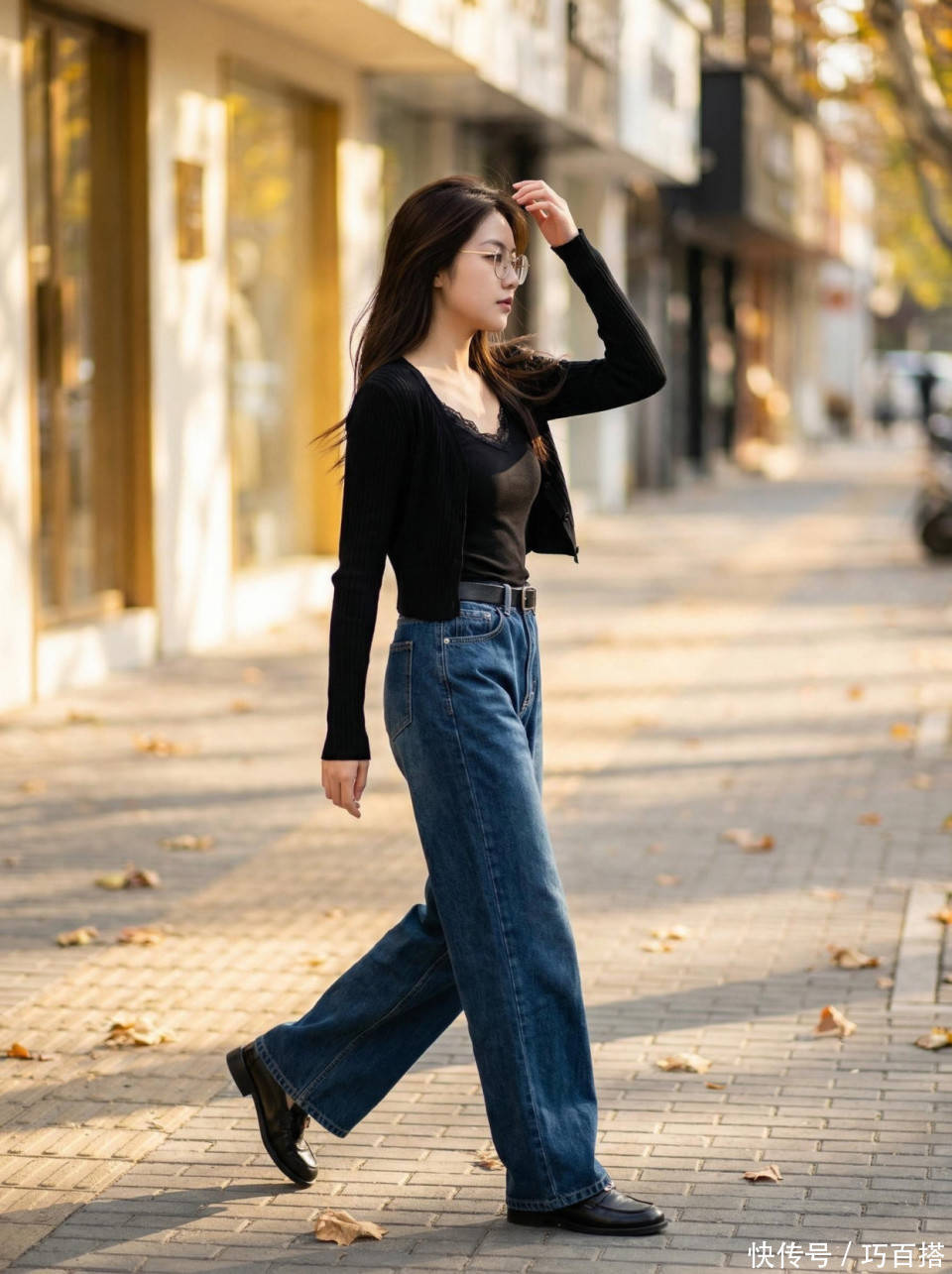 可爱宽松下装的姐妹,不错用小皮鞋搭配加肥加长拖地牛仔裤,可爱修身下装的姐妹,聘请窄版牛仔裤、直筒半身裙与之搭配也不会踩雷。